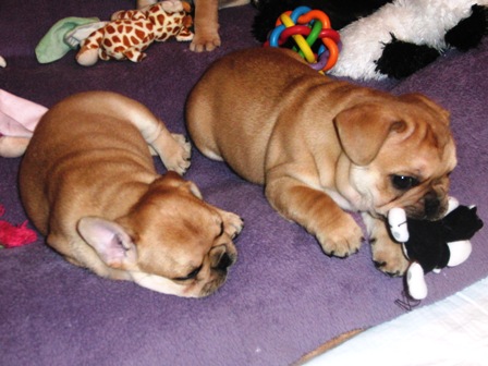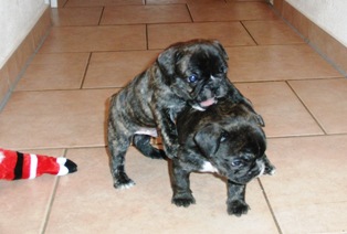 Jetzt fangen die Kleinen auch an mit dem Spielzeug zu spielen, wenn Bonny es nicht gerade wieder weggeschleppt hat. Spielzeug hat auf Bonny einfach eine magische Anziehungskraft. Die Tierchen werden angebellt und "todgeschüttelt" oder einfach hinterher geschleift.