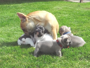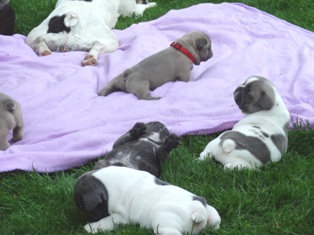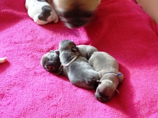 Heute hat unsere Fini 5 Welpen das Leben geschenkt. Es sind 1 blue Rüden (so wie der Papa), 2 Rüden in blue-fawn und 2 blue-pied Hündinnen.