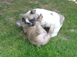 Es wird auch getobt und er lässt sich von seiner Mama auch nichts gefallen. Aber Finchen erträgt es mit Engelsgeduld und ist zufrieden das ihr noch ein Welpe geblieben ist.