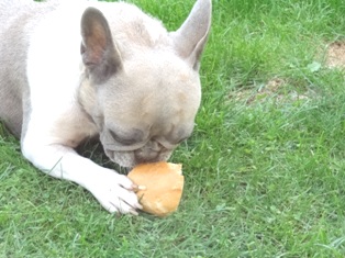 Heute haben die Großen wieder einmal trockene Brötchen (welche sie über alles lieben) bekommen. Fini ist gleich in den Garten gerannt um ihr Brötchen in Sicherheit zu bringen.
