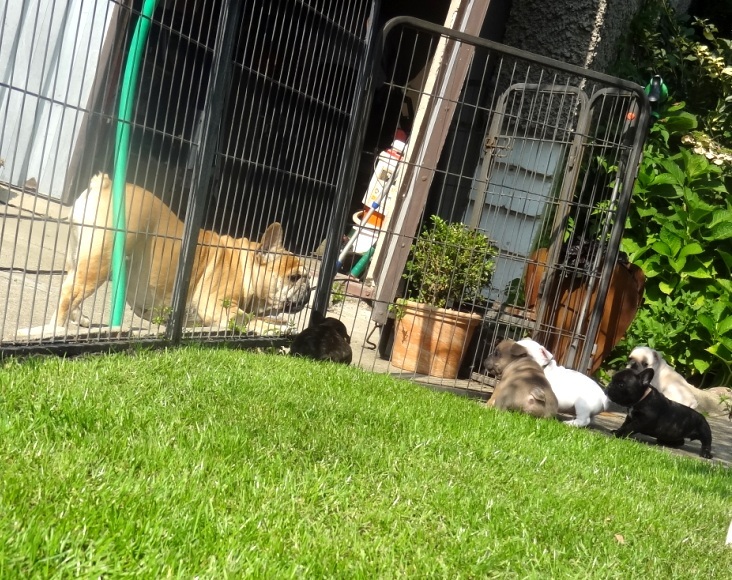 Als nebenan das Gehege aufgebaut wurde, sind die anderen 4 Mäuse mal kurz umgezogen und Bobi kam sich wie im Welpenhimmel vor.