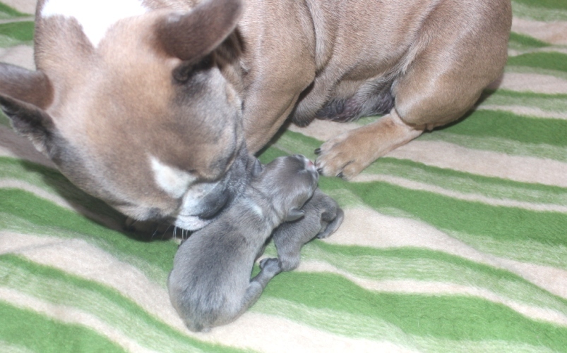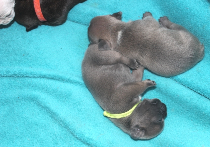 Heute hat uns Jette 2 kleine Welpen geschenkt. Ein kleines Mädchen in blue und ein kleiner Junge in blue-fawn.